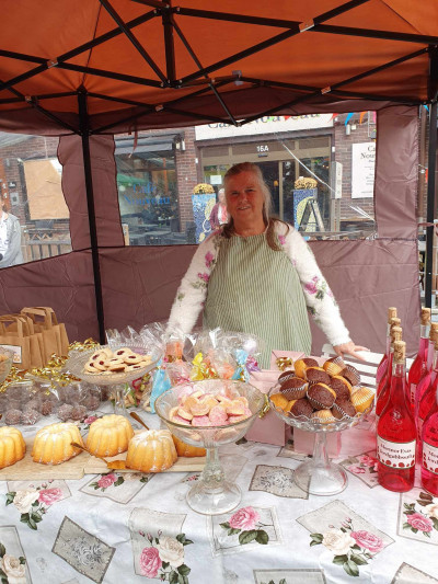 Bild från Berts dagbok, inspelad sommaren 2024 både som marknadsdam som säljer kakor och som bröllopsgäst.